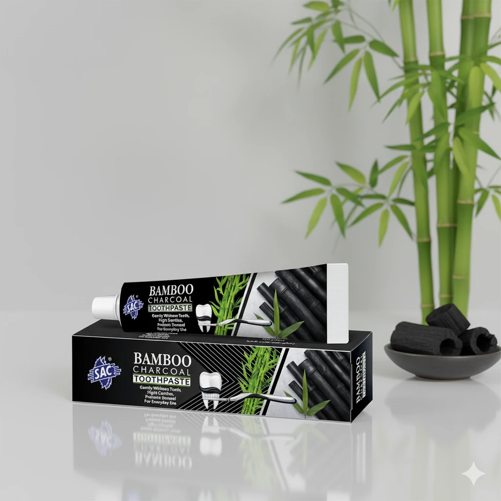 The natural power of Herbal Bamboo Charcoal Toothpaste, crafted to give you a refreshing, confident smile. Enriched with activated bamboo charcoal and herbal extracts, this toothpaste deeply cleanses your teeth, removes plaque, whitens naturally, and freshens breath without harsh chemicals. Its gentle yet powerful formula reaches deep into hard-to-clean areas, eliminating bad odors and toxins while protecting your enamel. Perfect for everyday use, this herbal blend supports healthier gums and brighter teeth, leaving your mouth feeling clean, fresh, and revitalized.