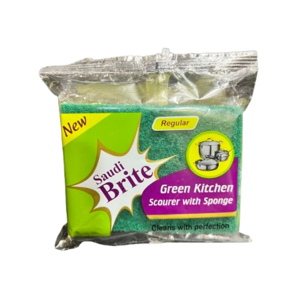 Keep your kitchen spotless with the Green Dual-Action Kitchen Scourer with Sponge – Regular Pack. This essential cleaning tool features a soft, absorbent sponge on one side for gentle wiping, and a tough, non-scratch scouring pad on the other for removing stubborn grime and grease.