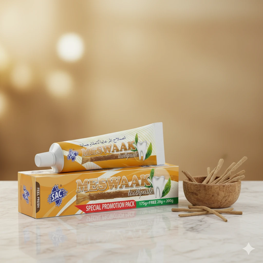 The natural power of tradition with Herbal Miswaak Toothpaste, enriched with the goodness of miswaak extract. Known for centuries as nature’s toothbrush, miswaak helps strengthen gums, fight plaque, freshen breath, and promote overall oral health. This fluoride-free, herbal-rich formula combines modern oral care with ancient wisdom, giving you a refreshing and effective brushing experience every day. Its gentle yet powerful cleaning action ensures stronger teeth, healthier gums, and a naturally bright smile—without harsh chemicals. Perfect for those who value herbal solutions for long-lasting oral freshness.
