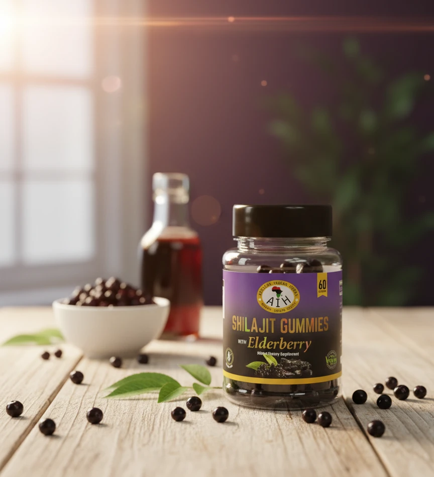 Boost your energy, immunity, and overall wellness with our premium Shilajit Gummies infused with Elderberry. These powerful gummies combine the ancient vitality-boosting properties of pure Himalayan Shilajit with the antioxidant-rich goodness of Elderberry. Designed for modern lifestyles, each gummy helps improve stamina, support immune defense, enhance mental clarity, and promote overall vitality. Delicious, convenient, and effective — no more bitter taste of raw shilajit! Perfect for daily use to keep your body active, your mind sharp, and your health protected.