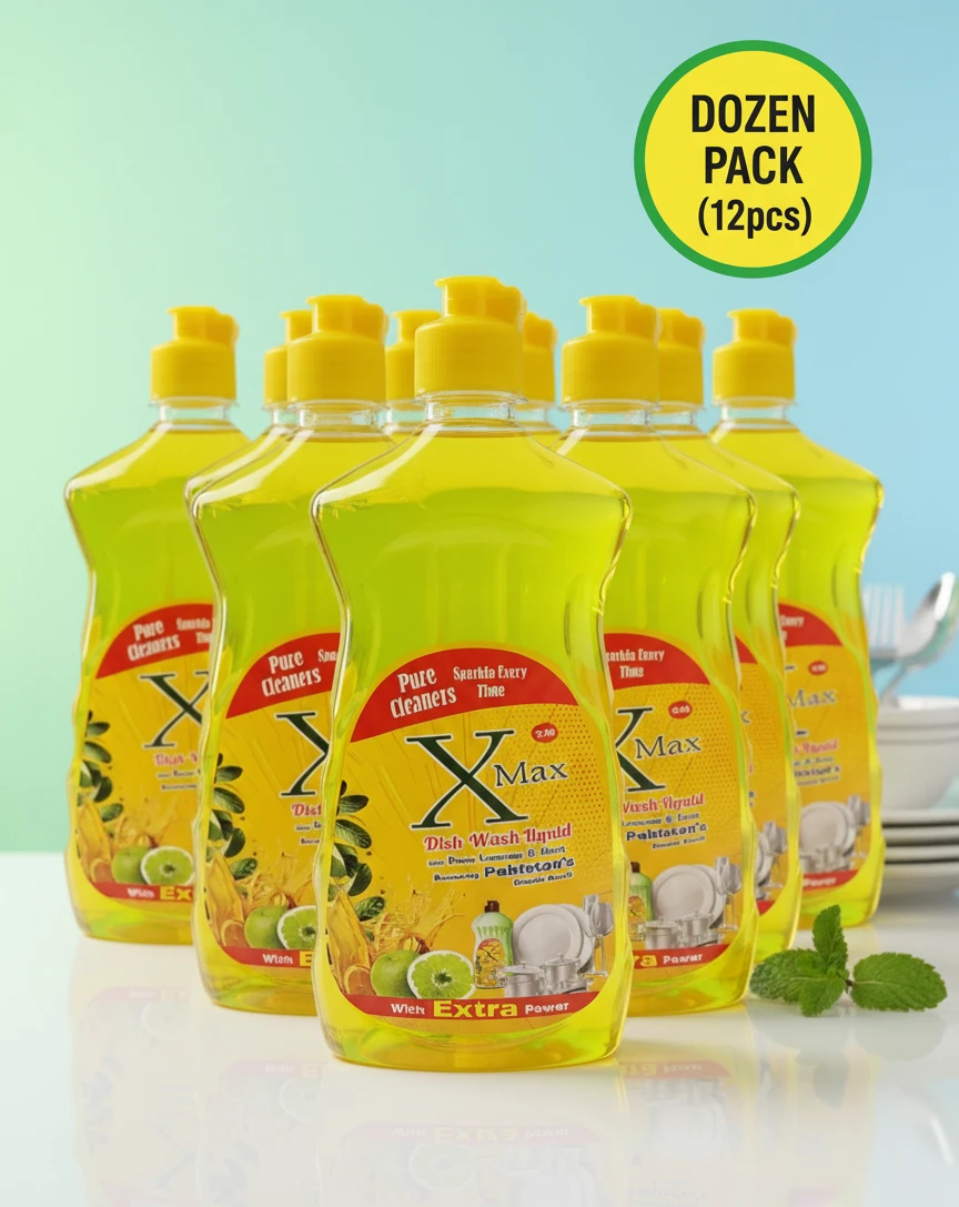 Bring sparkling shine and refreshing fragrance to your kitchen with X Max Dish Wash Liquid With Raw Lemon & Mint. Specially formulated with the natural power of raw lemon and cooling mint, this dishwashing liquid cuts through tough grease, removes stubborn stains, and leaves your dishes spotless with a fresh, zesty scent. Gentle on hands yet powerful on grime, it ensures hygienic cleaning while making dishwashing a refreshing experience. Perfect for everyday use, this Dozen Pack (12pcs) is an ideal choice for families, restaurants, and bulk buyers looking for unbeatable quality at a great value.